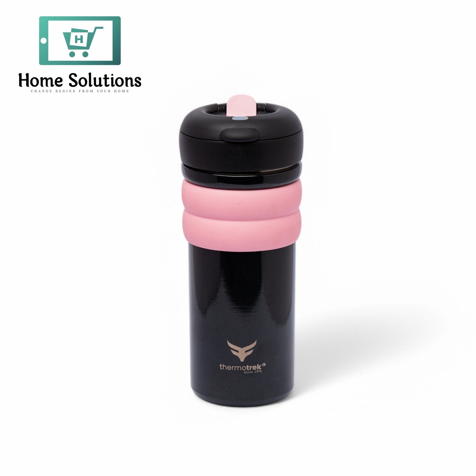 Stay hydrated in style with the Thermotrek Stainless Steel Insulated Water Bottle in a chic Black/Pink finish. This 27 oz (800ml) water bottle is designed for both style and performance, featuring double-wall vacuum insulation to keep your beverages hot for up to 12 hours or cold for up to 24 hours. The secure screw-on cap with a purple handle ensures a leak-proof seal and easy carrying, while the compact, bottle-shaped design fits comfortably in your hand, bag, or car cup holder. Perfect for the gym, office, or outdoor adventures, the Thermotrek water bottle keeps your drinks at the perfect temperature while adding a touch of elegance to your daily routine.