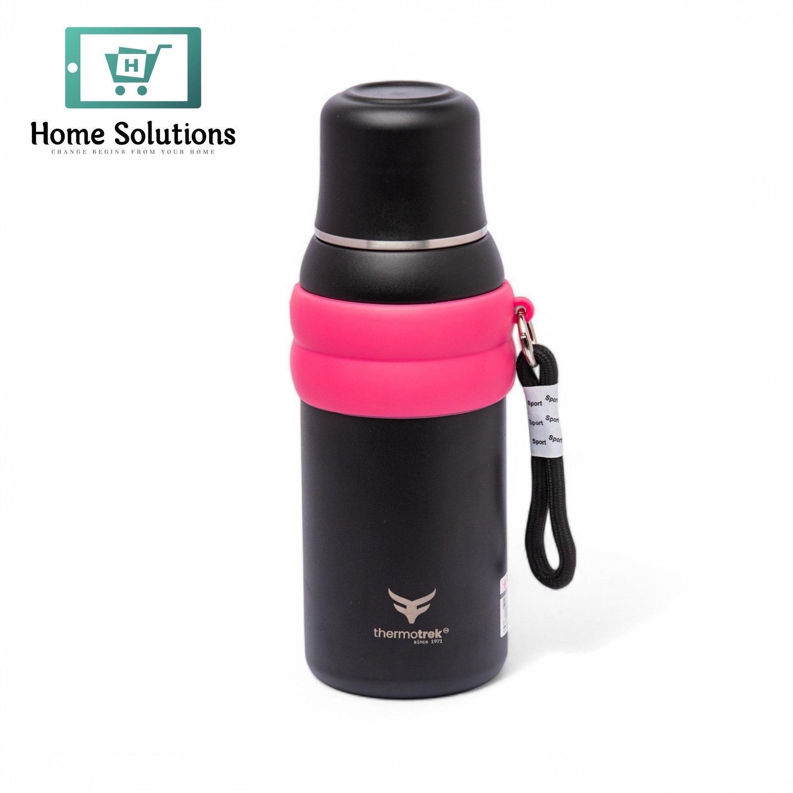 Stay hydrated in style with the Thermotrek Stainless Steel Insulated Water Bottle in a chic Black/Pink finish. This 27 oz (800ml) water bottle is designed for both style and performance, featuring double-wall vacuum insulation to keep your beverages hot for up to 12 hours or cold for up to 24 hours. The secure screw-on cap with a purple handle ensures a leak-proof seal and easy carrying, while the compact, bottle-shaped design fits comfortably in your hand, bag, or car cup holder. Perfect for the gym, office, or outdoor adventures, the Thermotrek water bottle keeps your drinks at the perfect temperature while adding a touch of elegance to your daily routine.