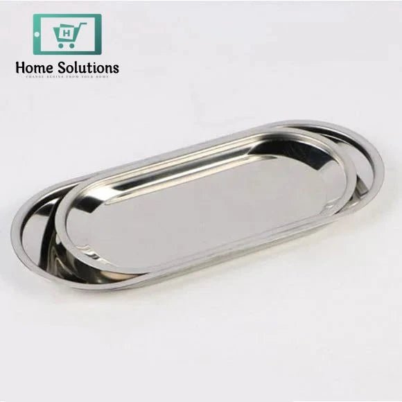 Stainless Steel Oval Decorative Tray – Long Silver Finish