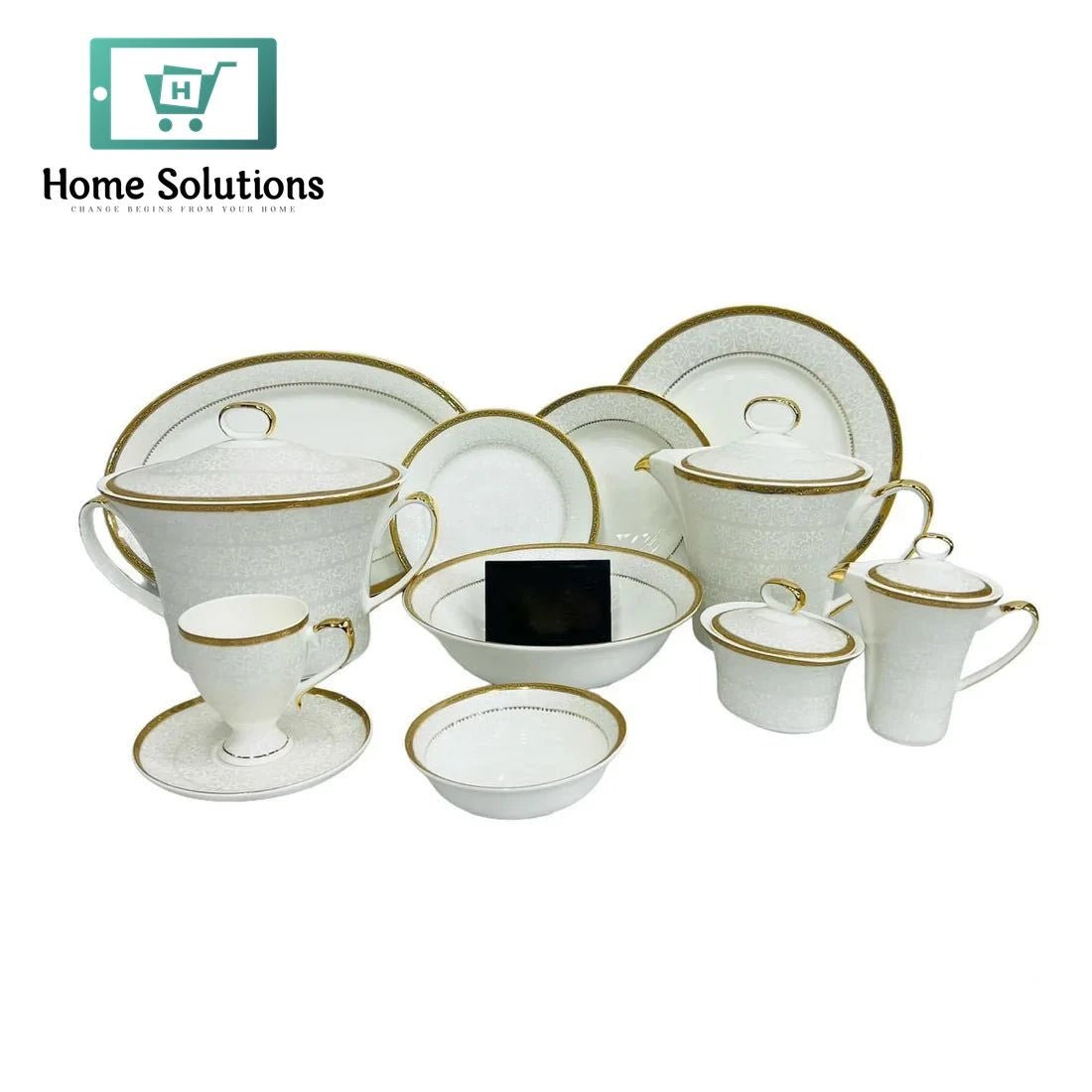 Bonechina Gold Rim Dinner Set of 61 Pieces – 8 Persson Serving