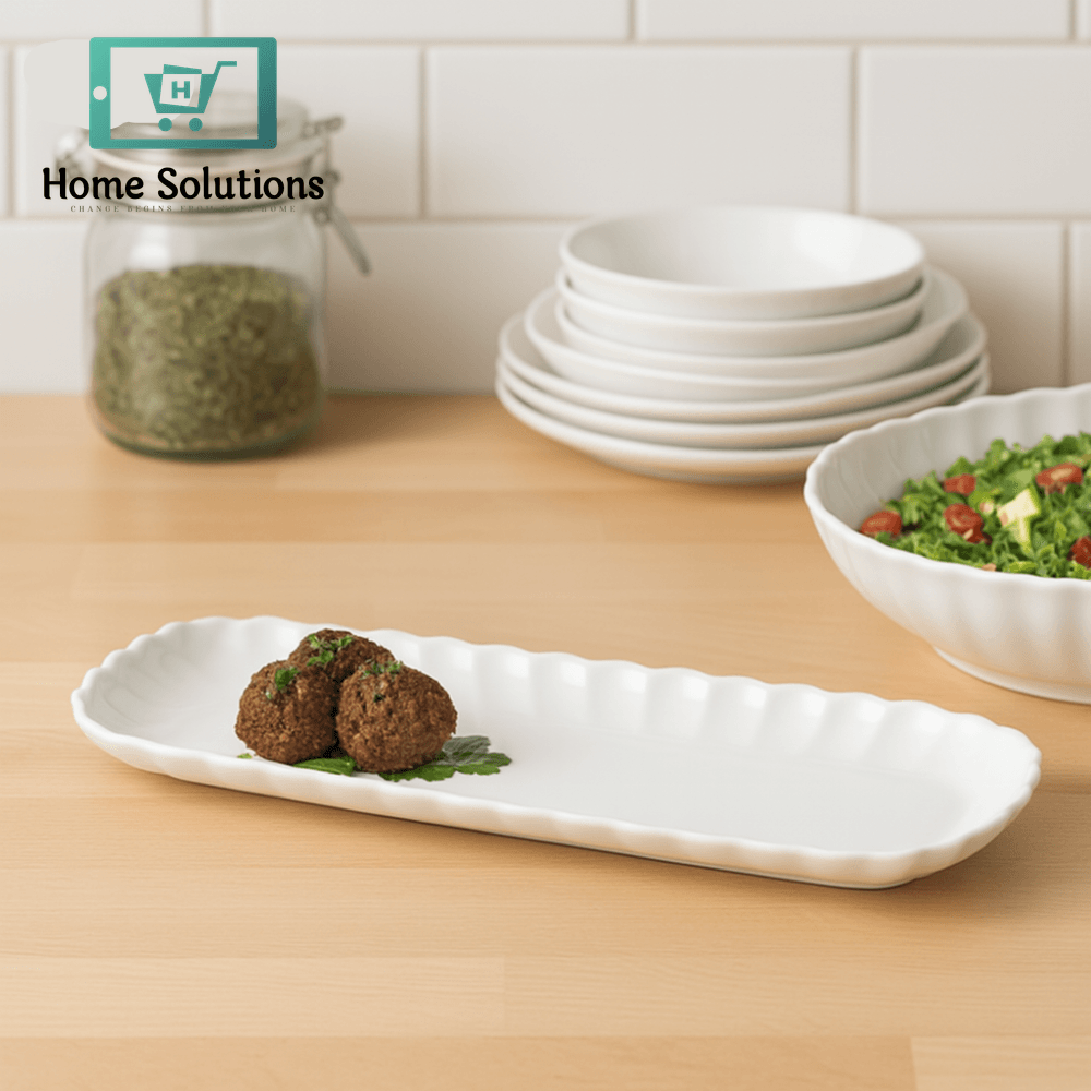 Elevate your food presentation with the Symphony Rectangular Groove Platter, crafted with a modern grooved surface to add texture and visual appeal to your table setting. Measuring 32 x 12 x 2.6 cm, this elegant tray is ideal for serving sushi, appetizers, desserts, or small bites with style. Its slim, space-saving profile and sleek edges make it perfect for both everyday dining and special gatherings. Durable, easy to clean, and thoughtfully designed, this platter is a functional yet eye-catching addition to your serveware collection.