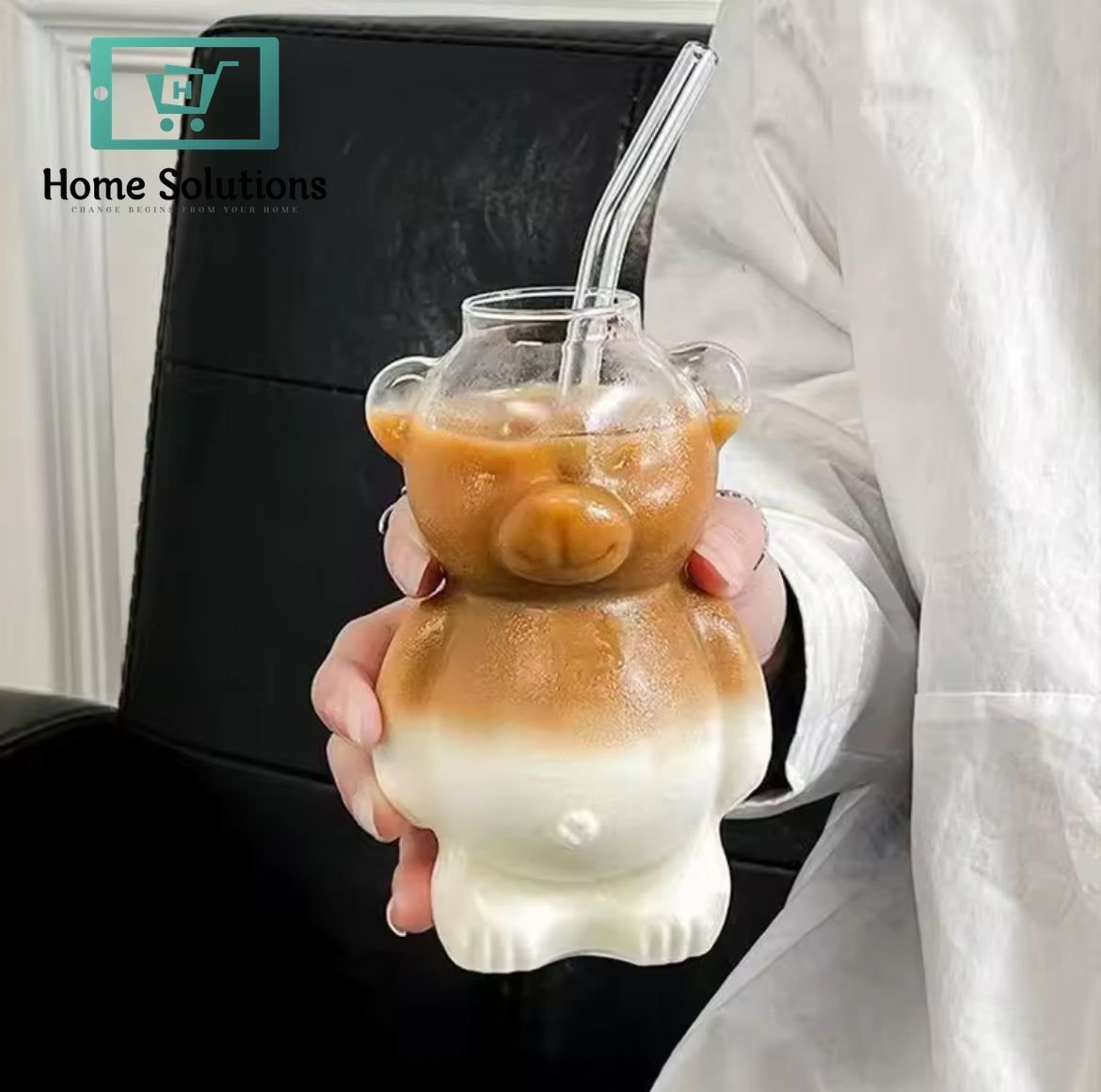 Teddy Bear Shape Borosilicate Glass IceTea/Coffee Tumbler – 410ml