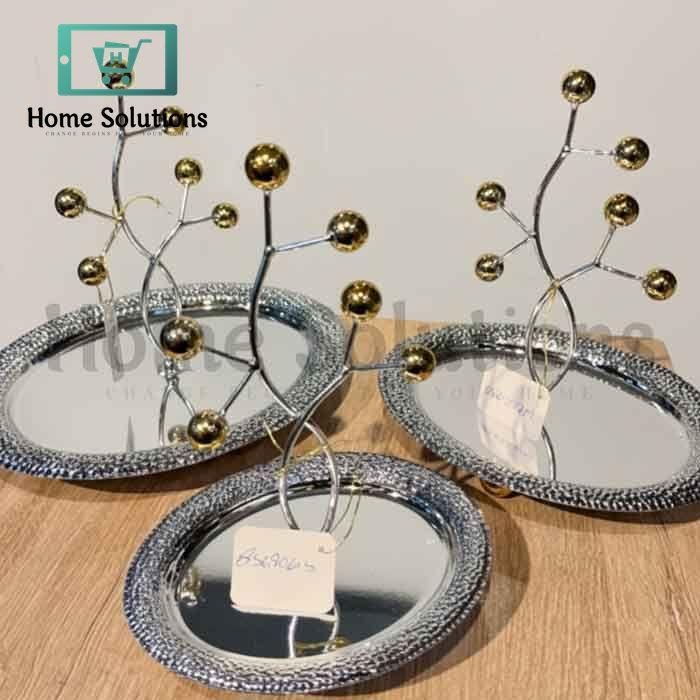 Elevate your home decor with our exquisite Oval Decor Stand, a perfect blend of modern elegance and functional design. Crafted with a stunning hammered silver-finish oval tray, this stand features a graceful metallic frame adorned with shimmering gold-toned spheres. It’s an ideal centerpiece for your coffee table, dining area, or console.