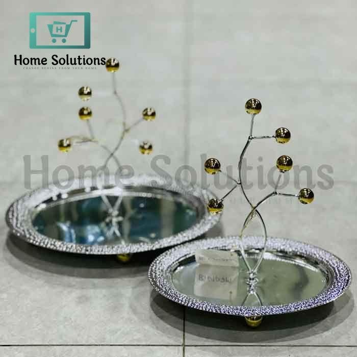 Premium Quality: Durable metal construction with a reflective silver tray and elegant gold accents.
