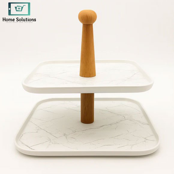 Built with a sturdy wooden support and balanced base, this serving tray is ideal for afternoon tea, family gatherings, parties, cafés, or everyday kitchen use. Whether used as a dessert stand or a decorative centerpiece, it enhances food presentation while adding style to any setting.