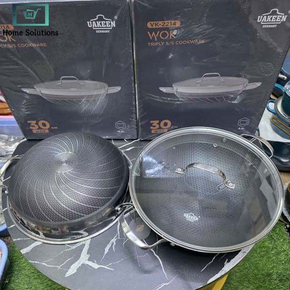 Cook healthier, faster, and smarter with the Uakeen Germany Honeycomb Hammered Wok. Designed with a premium honeycomb non-stick coating, a hammered exterior, and a heat-resistant glass lid, this wok ensures effortless cooking with even heat distribution and long-lasting durability.