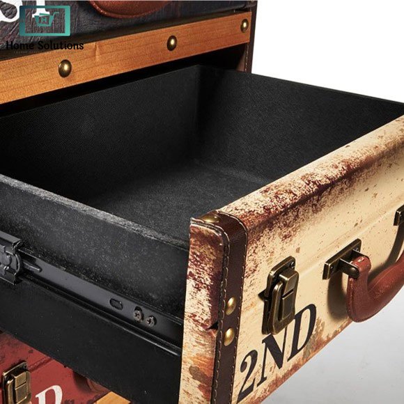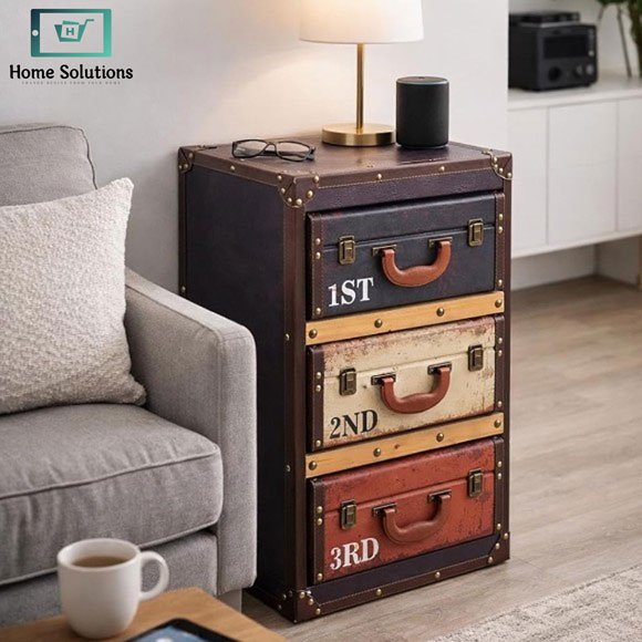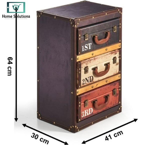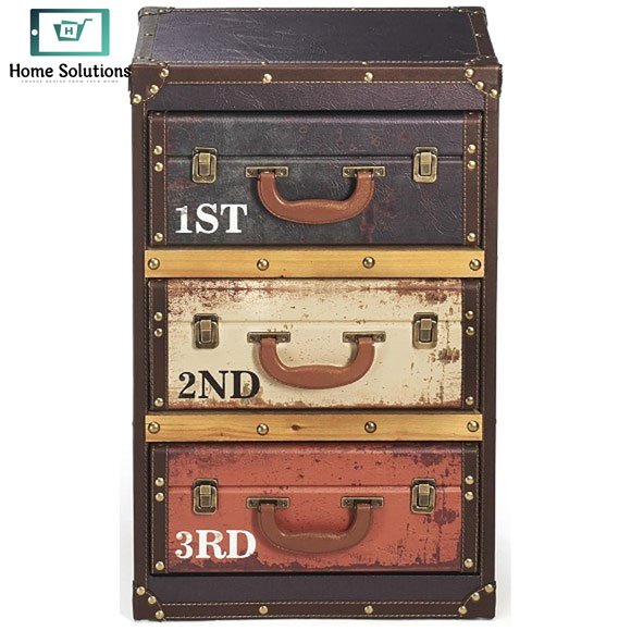 - Unique 3-drawer suitcase-style storage cabinet