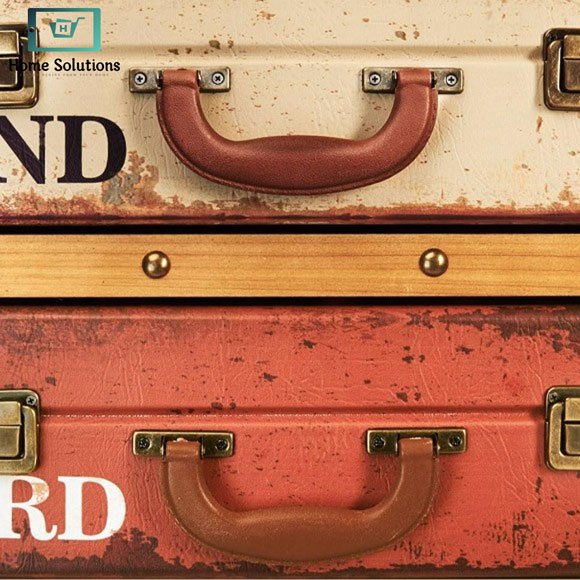 Each drawer is crafted like a mini suitcase, complete with leather-style handles, buckle locks, and numbered design (1st to 3th), giving it an authentic vintage travel vibe. The multi-color distressed finish enhances its rustic appeal, making it a perfect statement piece for any room.
