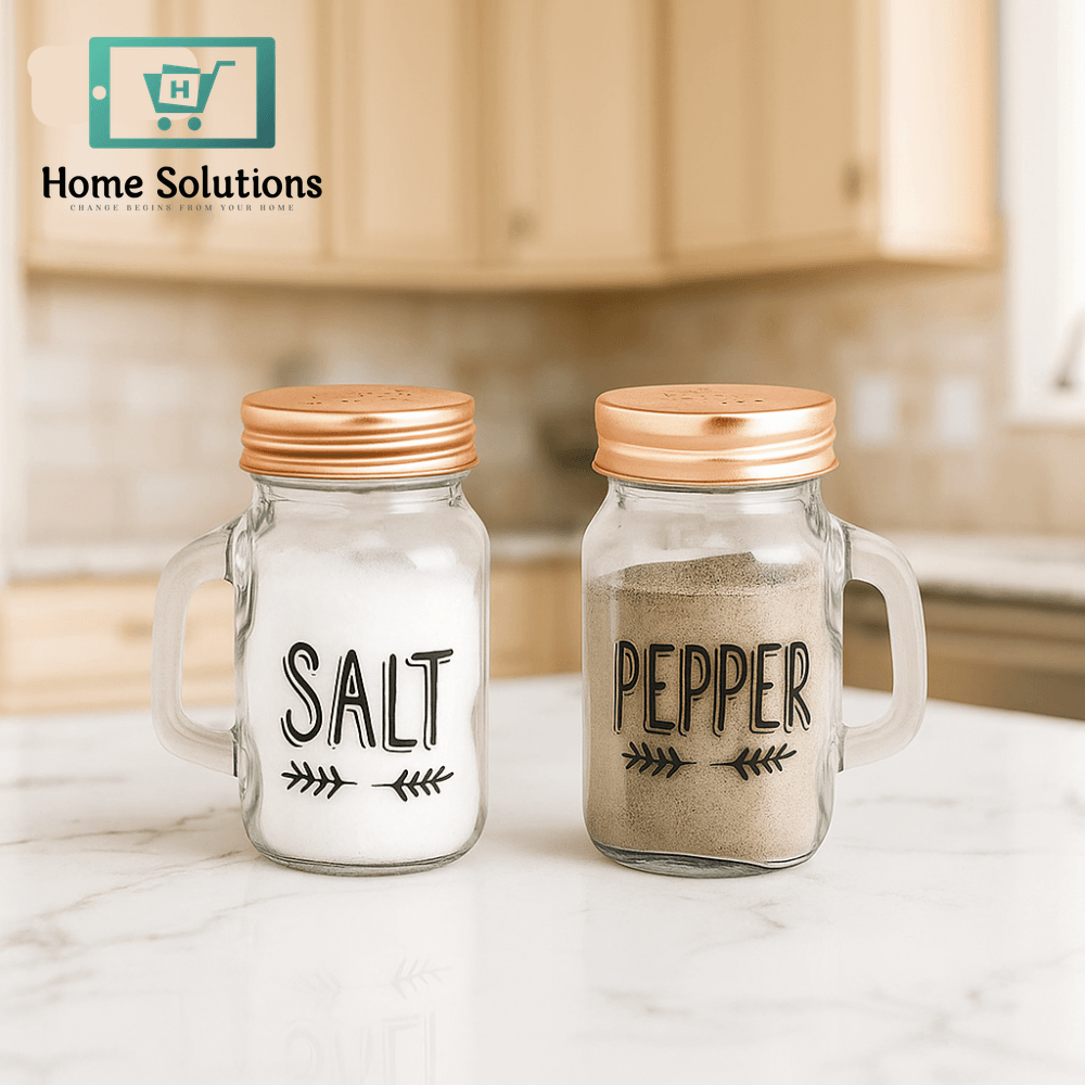Bring rustic charm to your dining table with the Vintage Mason Jar Salt & Pepper Shaker Set. Designed with clear glass bodies and elegant copper-finished lids, this set combines farmhouse appeal with everyday functionality. The classic mason jar silhouette offers a nostalgic look, while the screw-top lids ensure easy refilling and secure storage. Perfect for everyday meals or as a decorative accent for gatherings, these shakers add warmth and character to any kitchen or table setting.