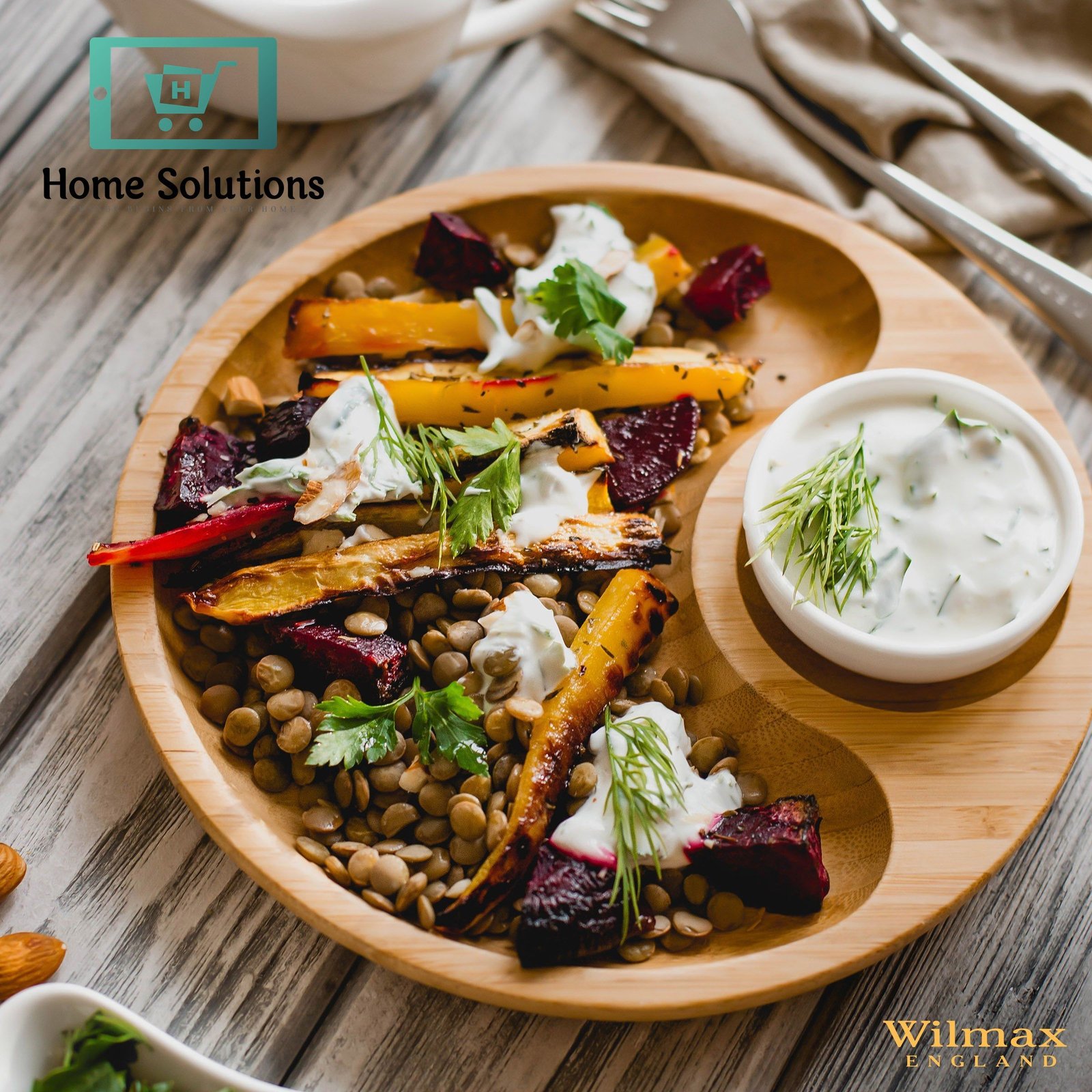Wilmax England Bamboo Round Divided Platter 12″ Inch – 2 Section Serving Tray