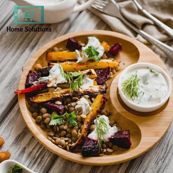 Wilmax England Bamboo Round Divided Platter 14″ Inch – 2 Section Serving Tray