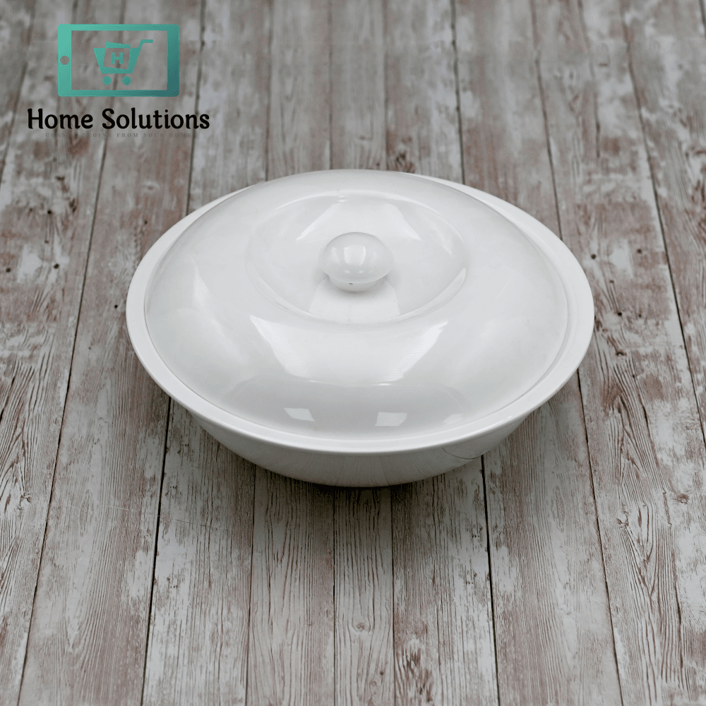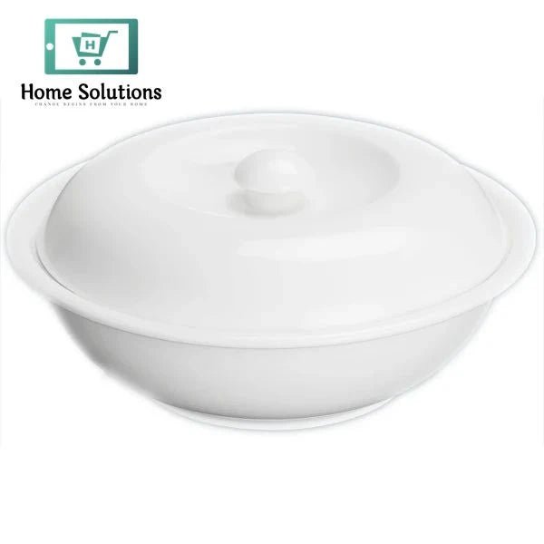 The Wilmax England Fine Porcelain Bowl with Lid is a versatile and elegant solution for serving and storing food. Measuring 9.5 & 10 inches in diameter, this covered bowl is ideal for keeping soups, stews, rice, or side dishes warm while enhancing presentation. Crafted from premium white porcelain, both the bowl and lid offer a smooth, glossy finish and timeless design. Suitable for everyday use or formal dining, it is microwave, oven, and dishwasher safe — making it practical for both home and professional kitchens.