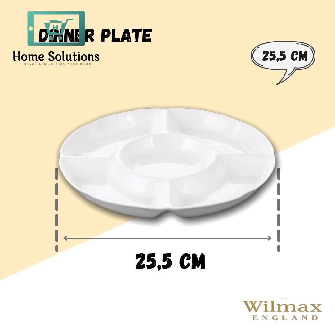 Wilmax England Fine Porcelain Divided Round Dish 10 Inch