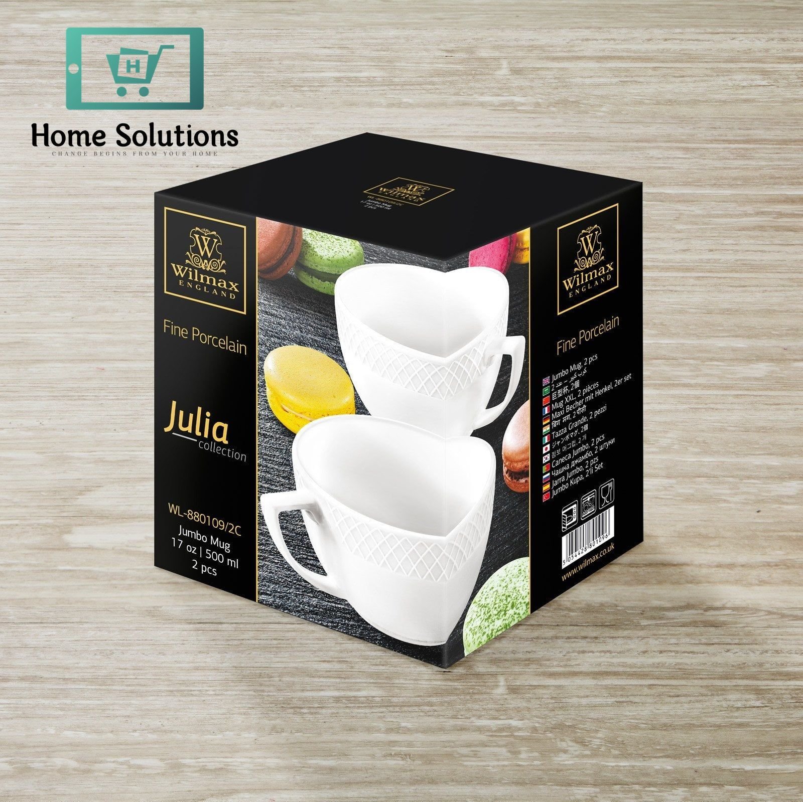 Wilmax England JULIA Jumbo Porcelain Cups – 500 ml White (Set of 2)
