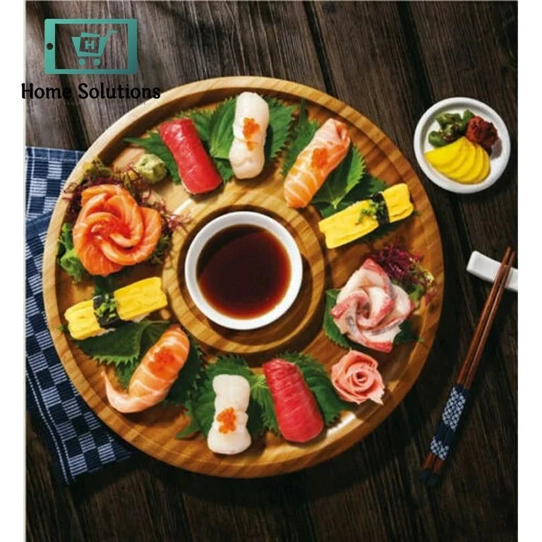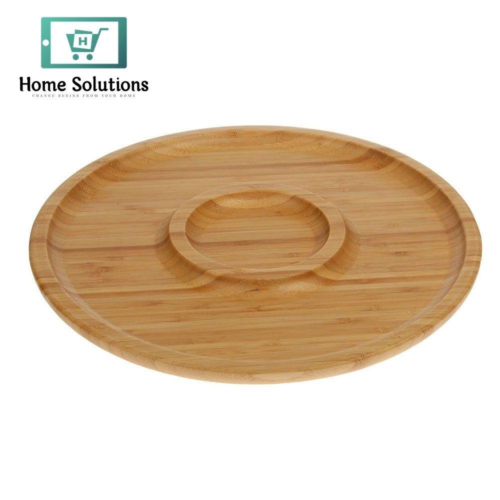 Wilmax England Round 2-Compartment Serving Platter 10″ Inch – Elegant Bamboo Tray