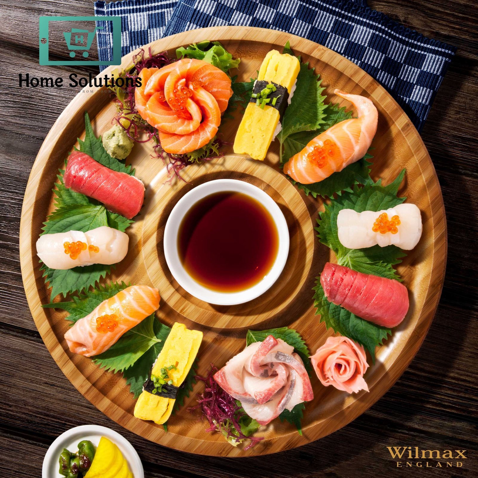 Wilmax England Round 2-Compartment Serving Platter 8″ Inch – Elegant Bamboo Tray