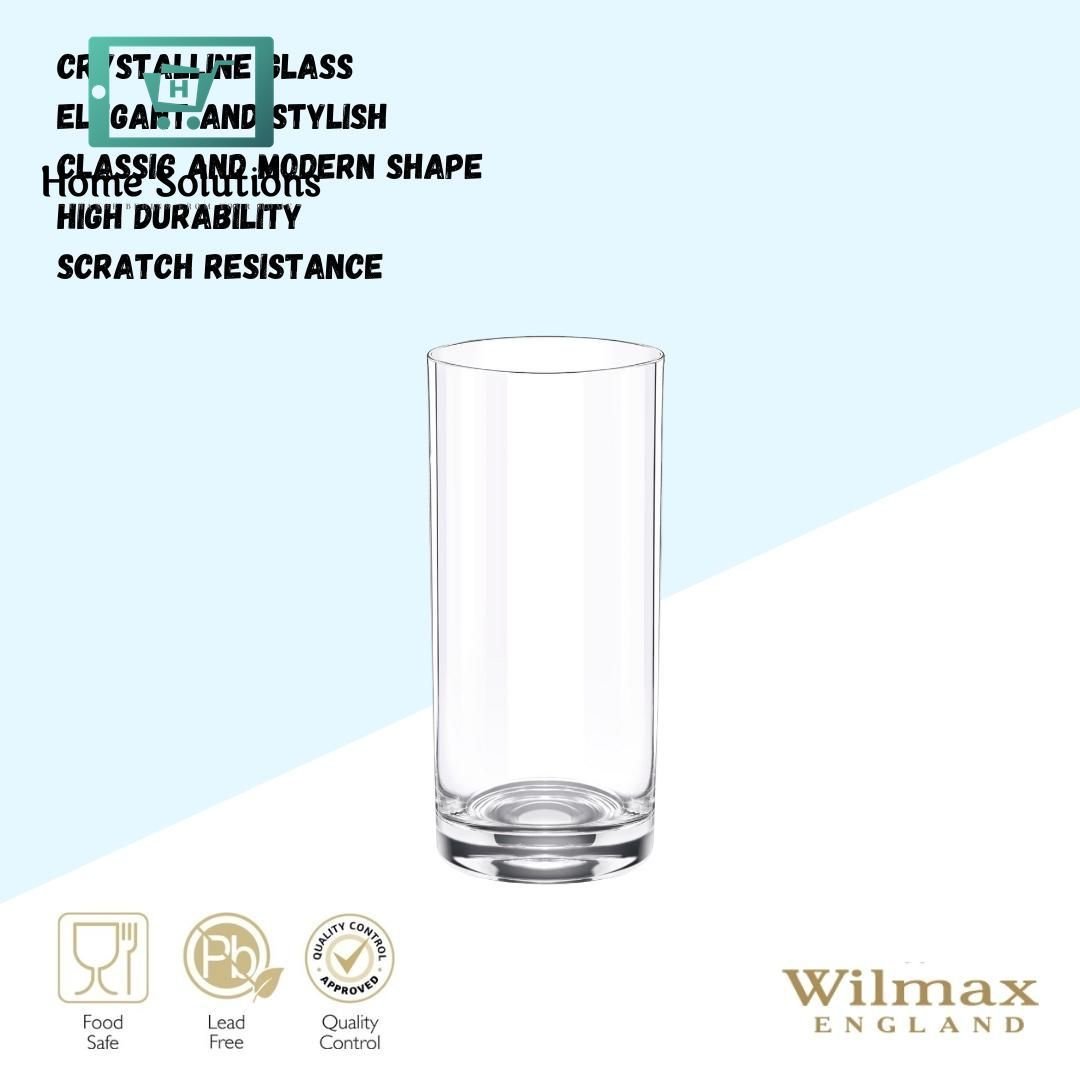 Wilmax Longdrink Glass Set – 390 ml | Set of 6 Crystal Clear Glasses
