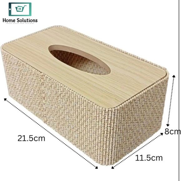 - Premium wooden tissue box with bamboo woven design