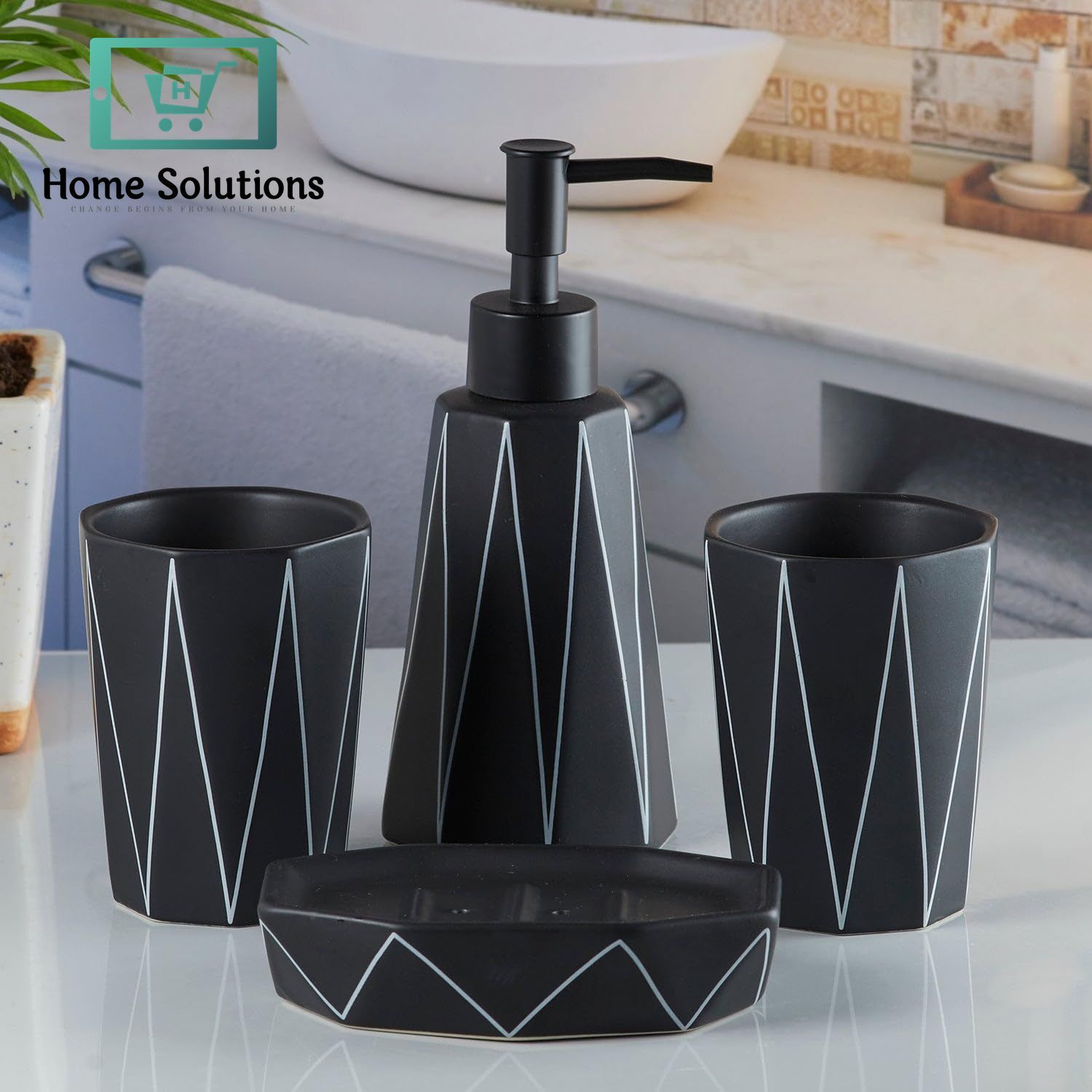 Give your bathroom a modern upgrade with this 4-piece accessories set, designed for both style and everyday convenience. Featuring a sleek soap dispenser, a practical toothbrush holder, and matching coordinating items, it keeps your essentials organized while enhancing the overall look of your space. Crafted from durable materials with a contemporary finish, this set is easy to clean and perfect for daily use or gifting.